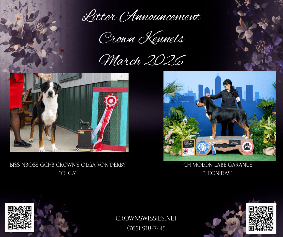 To apply for one of Crown Kennels’ Greater Swiss Mountain Dog puppies, you will need to fill out our puppy application. Our puppy application is below. Send to mrusk@tctc.com